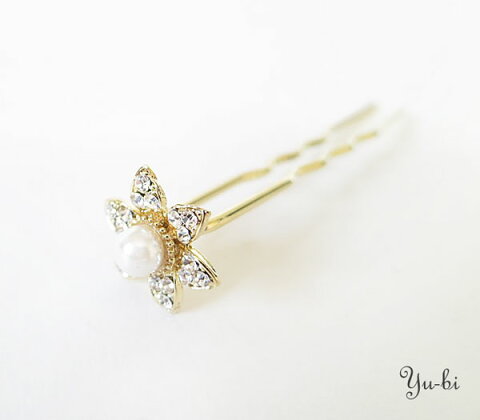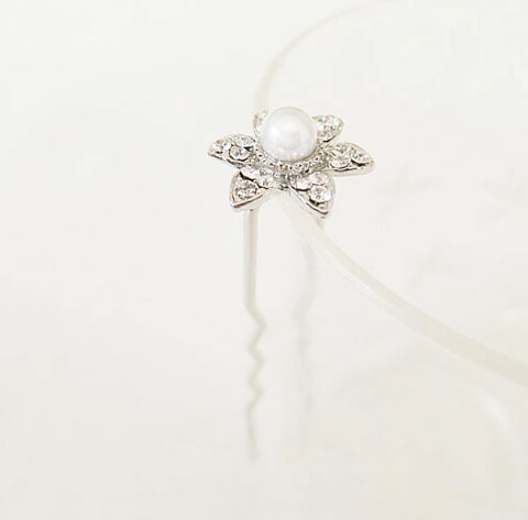 小粒の可愛らしいパールととんがり花びらが、愛らしいヘアスタイルを作り上げてくれます。